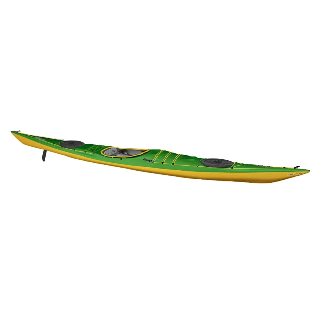 Der BISKAYA LV von Lettmann ist ein sportliches, modernes Seekajak mit ausgewogenen Fahreigenschaften. Der LV reagiert nahezu neutral bei Wind und Wellen, ist leicht zu beherrschen und spielerisch über die Kante steuerbar. Der V-Spant im Bug geht fließend in einen Rundspant über, wodurch der Biskaya schnell auf Geschwindigkeit zu bringen ist und diese Geschwindigkeit mit wenig Aufwand gehalten werden kann. Der abgerundete U-Spant unter dem Sitz gibt dem Seekajak eine hohe Anfangs- und Endstabilität. Das Lettmann Kajak überzeugt vor allem auch mit einem überragenden Geradeauslauf, der sich durch das integrierte Steuerskeg beeinflussen lässt. Außerdem lässt sich der Biskaya durch die hochgezogenen Enden sauber und kontrolliert Aufsurfen und gleitet trocken durch Wellen und Brandung. Der LV richtet sich an leichtere Paddler und Paddlerinnen und ist sowohl für Tagestouren als auch für längere Reisen mit Gepäck geeignet. Das Lettmann Biskaya Seekajak kaufen sich fortgeschrittene Paddler oder motivierte Einsteiger.