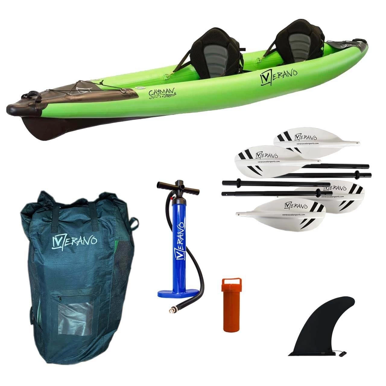 Der VERANO CAYMAN DUO ist ein universell einsetzbares Schlauchboot für 1-2 Personen. Egal ob allein oder zu zweit, das Cayman Duo besticht und überzeugt durch seine Vielseitigkeit. Das Cayman Paddelboot ist ein Hybrid Konstruktion mit Drop-Stitch Boden und seitlichen Luftschläuchen. Der Drop-Stitch Boden macht das Boot steif und widerstandsfähig. Die abnehmbare Finne und der ausgeprägte Kiel garantieren guten Geradeauslauf auch bei Wind und rauen Verhältnissen. Dieses aufblasbare Luftboot garantiert jede Menge Spaß auf dem Wasser und ist auch für Paddel-Einsteiger uneingeschränkt zu empfehlen. Unsere Komfortsitze bieten Sicherheit und sind äußerst bequem.